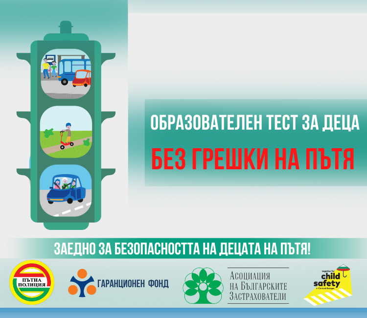 Образователният онлайн тест „Без грешки на пътя“ е ориентиран към малките участници в пътното движение и е свободно достъпен чрез сайта на Асоциация на българските застрахователи. Съдържанието му е консултирано от ГД „Национална полиция“- МВР. В теста, чрез картинки, са представени 10 обичайни ситуации на пътя, като целта е децата да открият дали има „грешка на пътя“ и да посочат каква е тя. В отговор към всеки въпрос-ситуация има разработена кратка образователна част и се представя вече „вярната“ картинка. Тестът е подходящ както за индивидуални, така и за групови занимания с деца на тема пътна безопасност и основни правила за движение по пътищата.