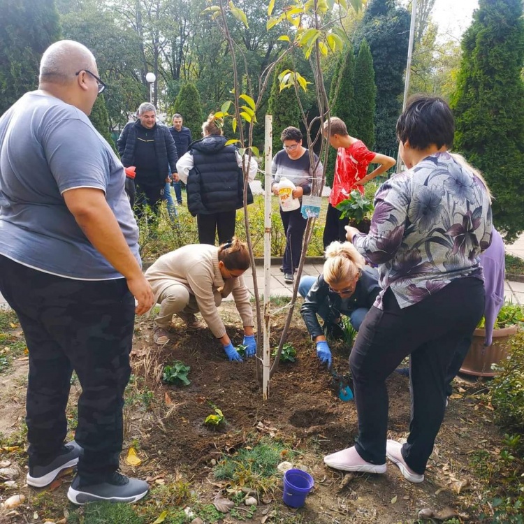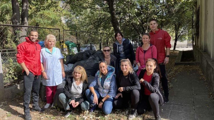 9) Помощ в дома за стари хора „Дълголетие”, гр. София, - освежаване на двора, събиране на падналите есенни листа и подготвяне цветята за зимния сезон.