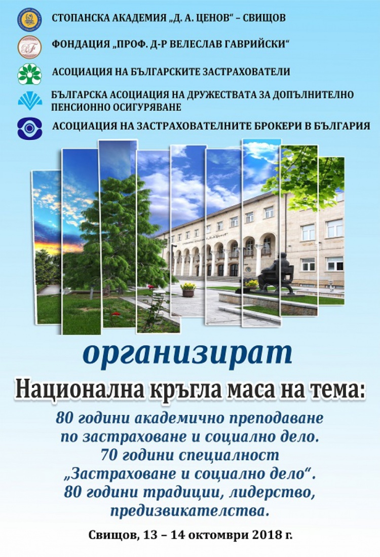 Стопанската академия „ Д.А. Ценов“ – Свищов организира национална кръгла маса на 13-14 октомври 2018 г.  Събитието е под надслов „80 години академично преподаване по застраховане и социално дело. 70 години специалност „Застраховане и социално дело“. 80 години традиции, лидерство, предизвикателства“ . То има за цел да отбележи тези годишнини, като събере академичните и бизнес кръгове, за да дискутират постиженията през годините.