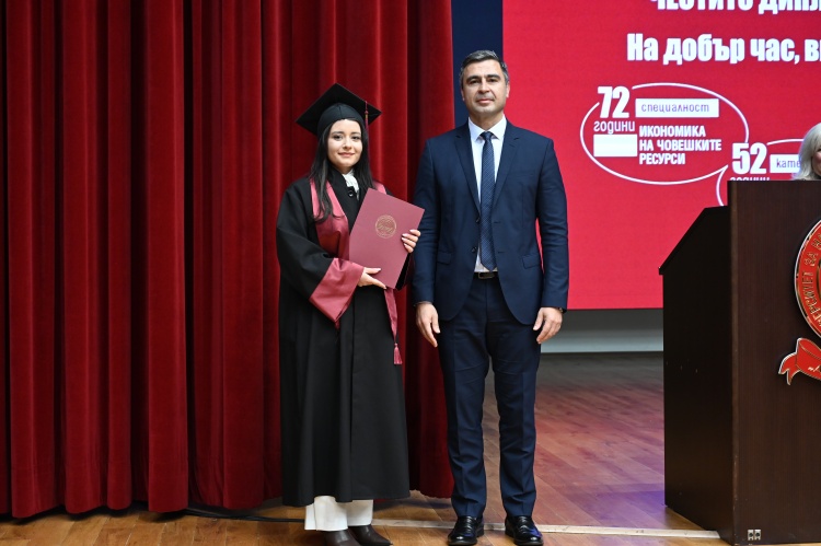 На официална церемония бяха връчени завършилите магистри от специалност „Застраховане и социално дело“ и специалност „Икономика на човешките ресурси“ в Университета за национално и световно стопанство (УНСС).
